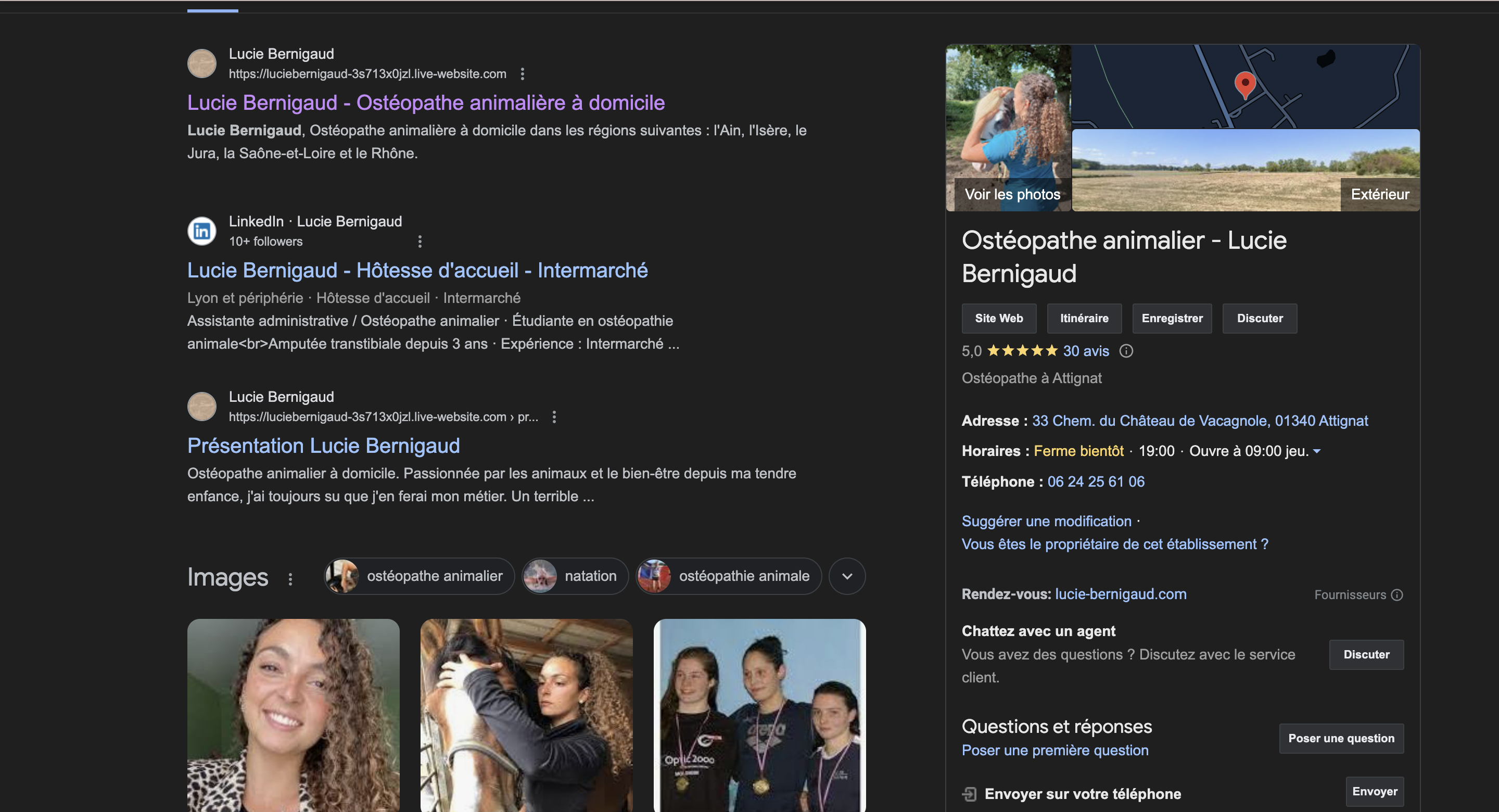 Lucie Bernigaud est une ostéopathe animalière auto-entrepreneuse basée à Bourg-en-Bresse. Elle a sollicité notre entreprise pour développer son activité grâce aux outils digitaux. Le projet visait à augmenter la visibilité et la notoriété de Lucie, renforcer la confiance des clients, et accroître ses ventes de services en ostéopathie animale.