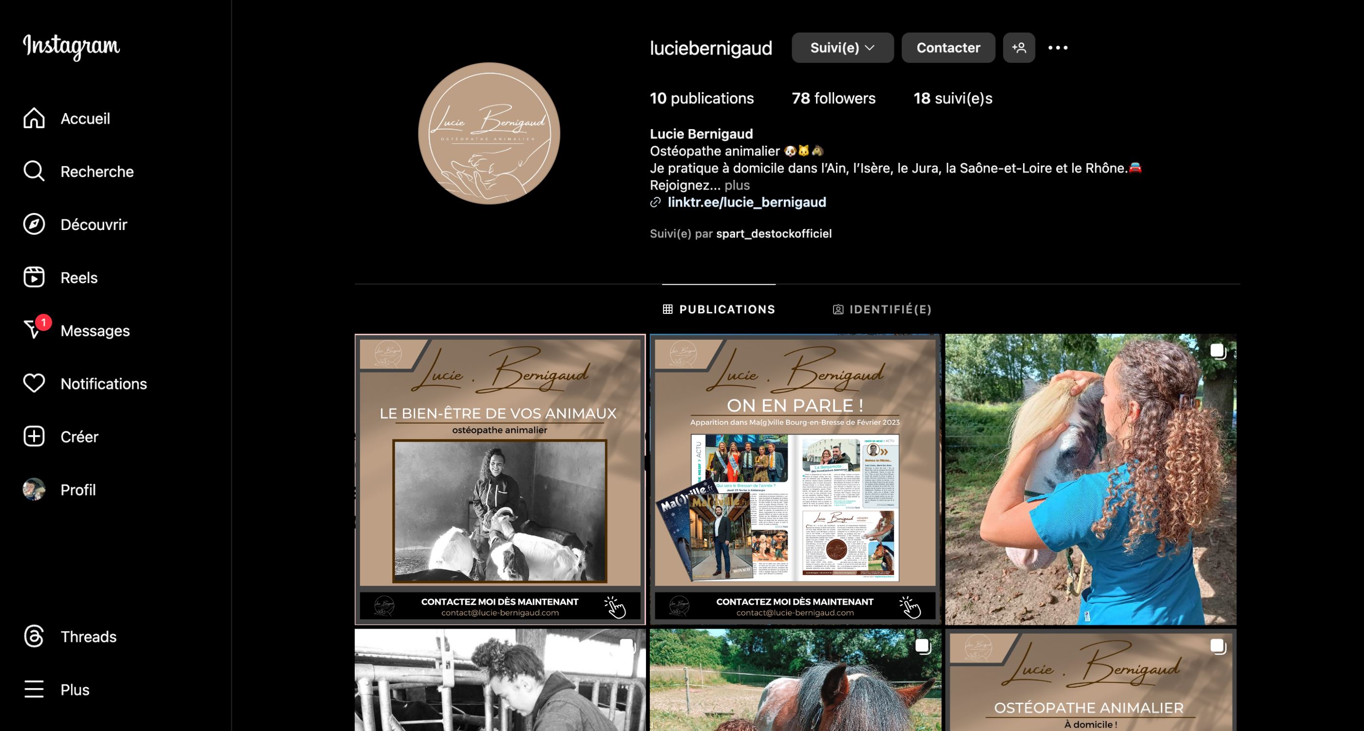 Lucie Bernigaud, exerçant en tant qu’ostéopathe animalière tout en ayant un double emploi, souhaitait se consacrer entièrement à sa passion. Pour ce faire, elle avait besoin de booster sa présence en ligne et de se faire connaître auprès d’un public plus large. L’enjeu était de créer une image professionnelle et attrayante pour attirer de nouveaux clients et fidéliser les existants.